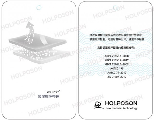HOLPOSON? Aquabrother 適用于棉及其混紡織物的吸濕排汗功能整理劑,經本品處理后的織物,具有優良的手感,同時賦予纖維素纖維及其混紡織物具有好的親水、吸濕排汗性能。HOLPOSON? Aquabrother賦予織物有一定的抗靜電效果,能改善易去污效果。